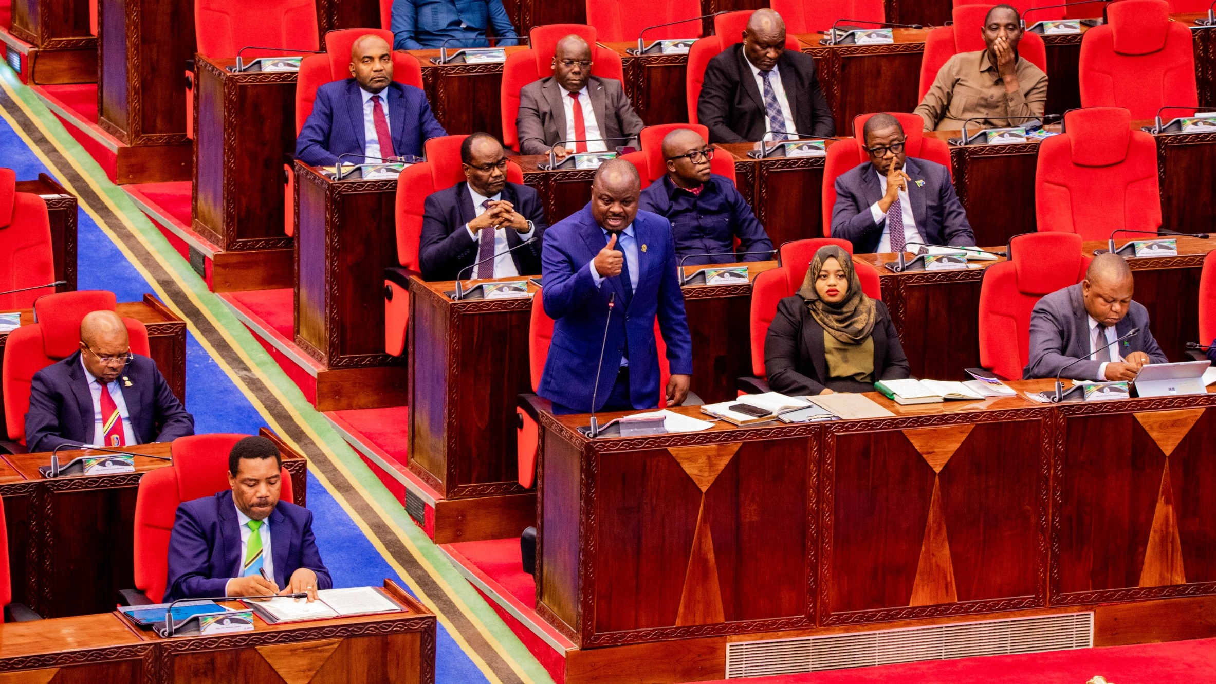 Waziri wa Nchi Ofisi ya Waziri Makuu, Kazi, Ajira na Mahusiano, Mhe. Deus Sangu (Wakwanza kushoto) akiwa pamoja na Waziri wa Nchi Ofisi ya Rais, Serikali ya Mapinduzi Zanzibar, Mhe. Dkt. Saada Mkuya Salum (Wapili kushoto), Mwenyekiti wa Bodi ya Wadhamini Mfuko wa Hifadhi ya Jamii kwa Watumishi wa Umma (PSSSF), Bi. Joyce Mapunjo (Wapili kulia) na Mkurugenzi Mkuu wa PSSSF, Bw. Fortunatus Magambo (wa kwanza kulia) wakimkabidhi mfano wa hundi yenye thamani ya shilingi milioni 10, Katibu wa Chama cha Wasioona Zanzibar (ZANABA), Bw. Mohamed Mbarouk, wakati wa hafla ya futari iliyoandaliwa na PSSSF kwa makundi mbalimbali huko Zanzibar Machi 17, 2026.