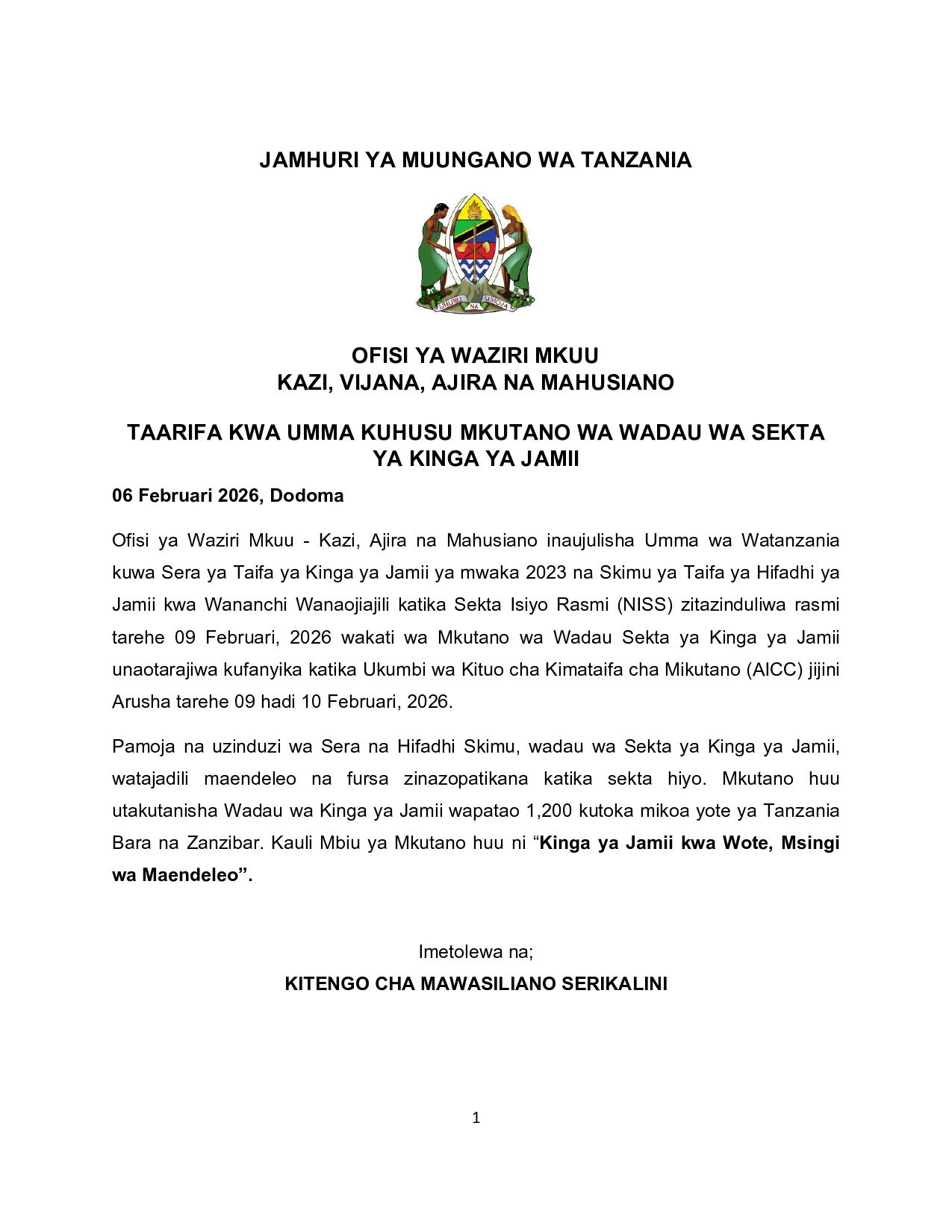Taarifa kwa Umma kuhusu Mkutano wa Wadau wa Sekta ya Kinga ya Jamii