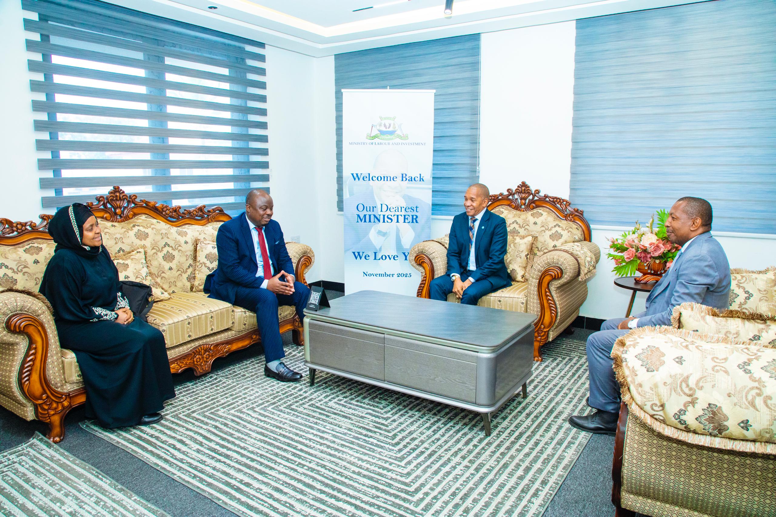 Katika mazungumzo ya kiitifaki yaliyofanyika mjini Zanzibar, Machi 17, 2026,kati ya Waziri wa Nchi, Ofisi ya Waziri Mkuu (Kazi, Ajira na Mahusiano ), Mhe. Deus Sangu, na mwenyeji wake, Waziri wa Kazi na Uwekezaji wa SMZ, Mhe. Shariff Ali Shariff walikubalina kuimarisha urithi wa Muungano na kutafsiri maono ya Rais Dkt. Samia Suluhu Hassan na Rais Dkt. Hussein Ali Mwinyi kwa manufaa ya wananchi wa pande zote mbili.